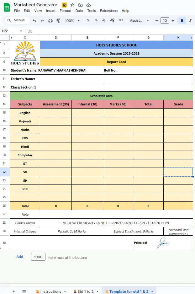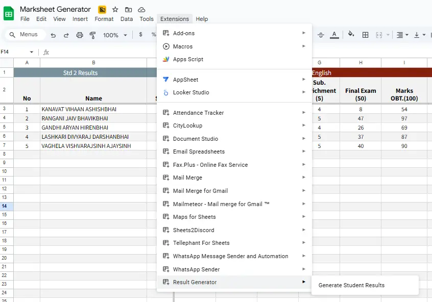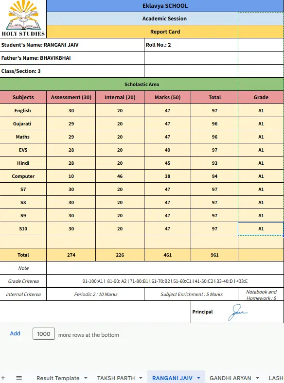 Simplify result preparation with our easy-to-use tool inside Google Sheets. Perfect for schools, teachers, and coaching institutes.